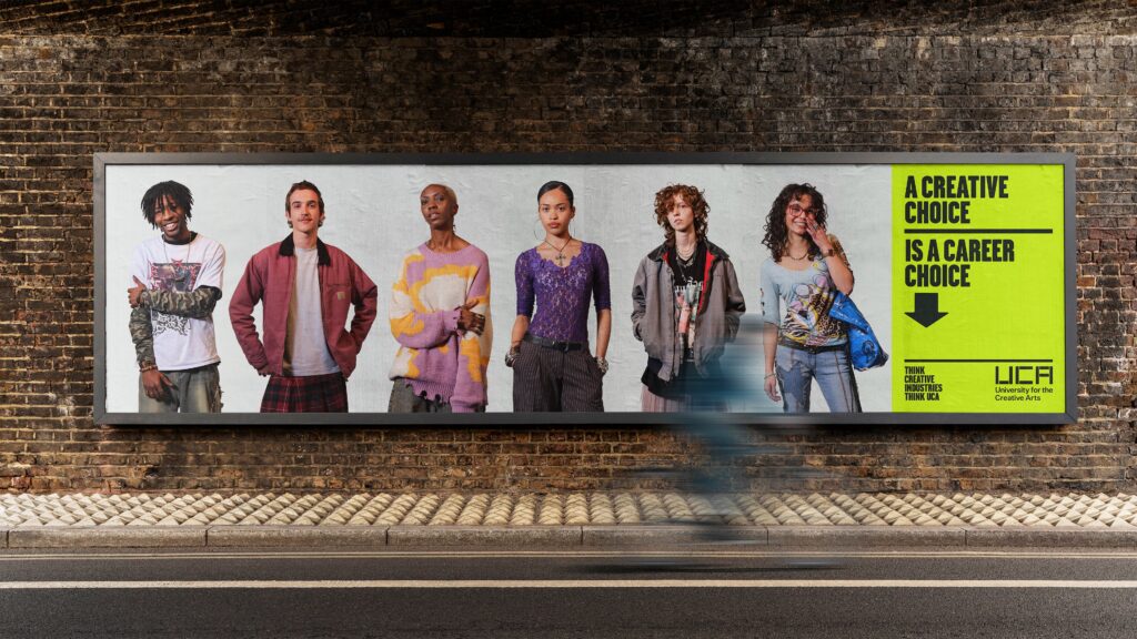 The result is a brand and positioning strategy for UCA affirming the economic power of the UK’s creative industries, positioning creativity to prospective students as both a viable career path and an essential contributor to national growth. Reframing creative education as a strong, future-ready investment and placing UCA as a preferred option to key competitors for identified target audiences – rather than a second or third choice to many.